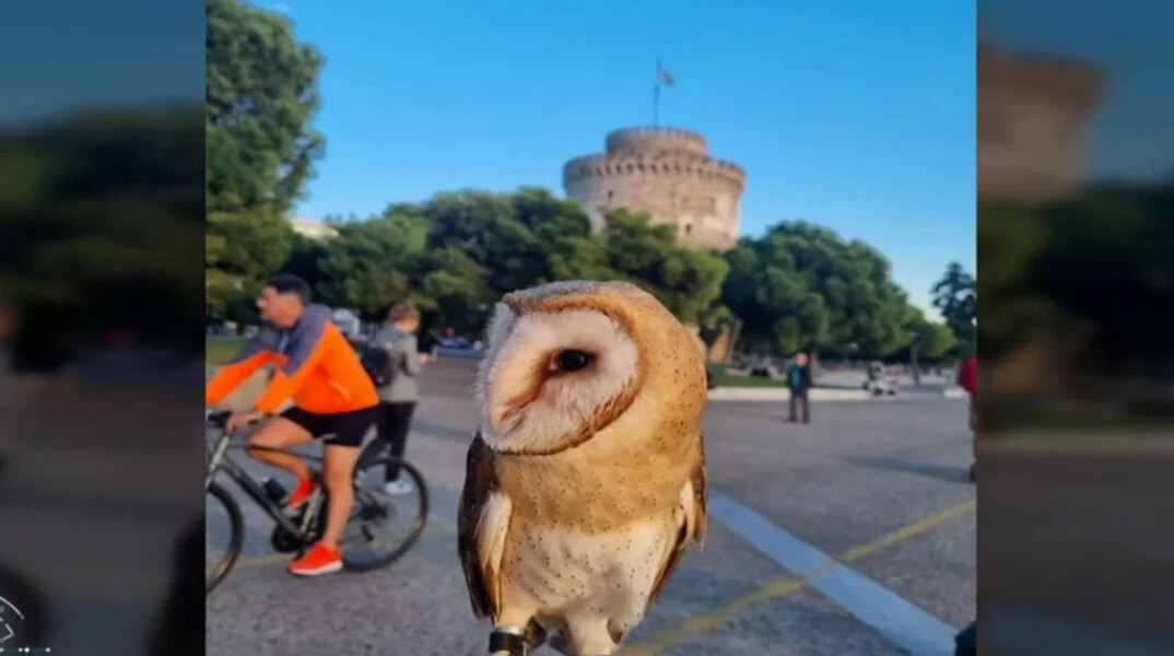 Δεμένη με αλυσίδα είχε την κουκουβάγια στη Θεσσαλονίκη ο άνδρας που εμφανίστηκε στον Λευκό Πύργο, προκαλώντας αντιδράσεις. Ποια είναι η τυτώ.