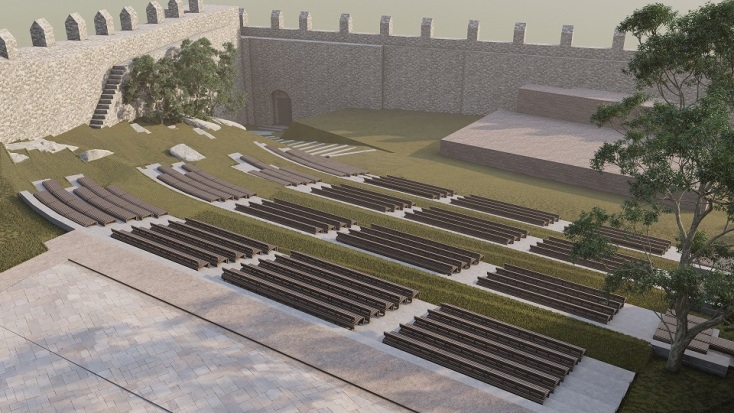 Διαμορφώνονται διάδρομοι κίνησης επισκεπτών, εγκαθίσταται ηλεκτρικό αναβατόριο, αποκαθίσταται το υπαίθριο θέατρο
