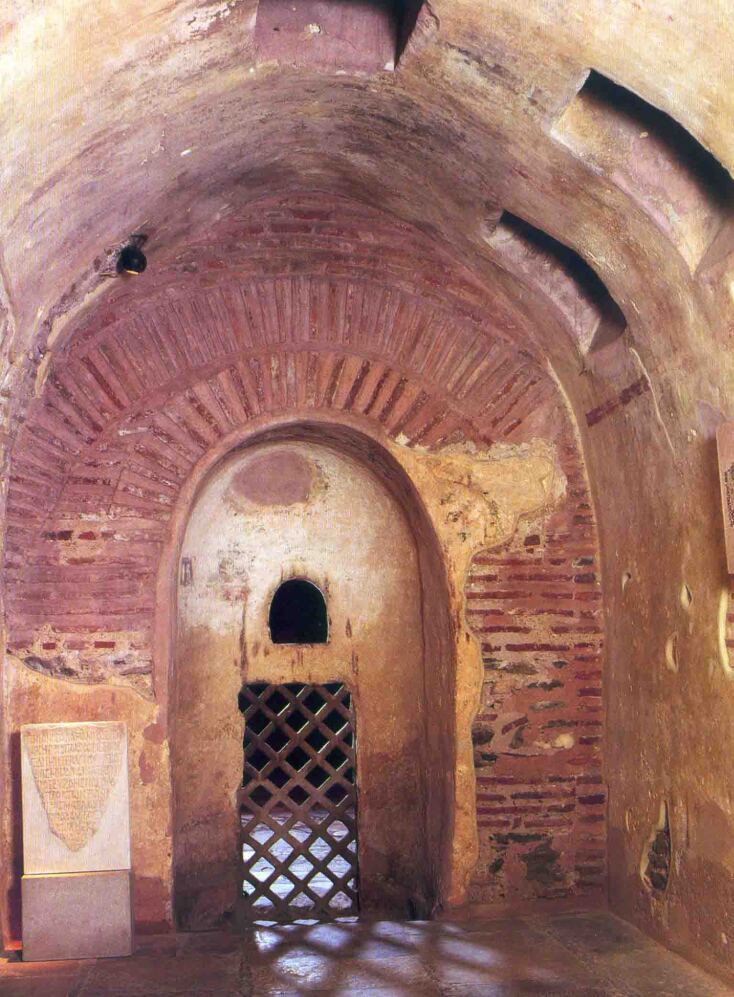 Ανατολικά του μεγάλου ρωμαϊκού λουτρού, κάτω από το εγκάρσιο κλίτος βρίσκεται η Κρύπτη, η είσοδος της οποίας οδηγεί, σύμφωνα με την παράδοση, στο χώρο που μαρτύρησε ο Άγιος Δημήτριος.