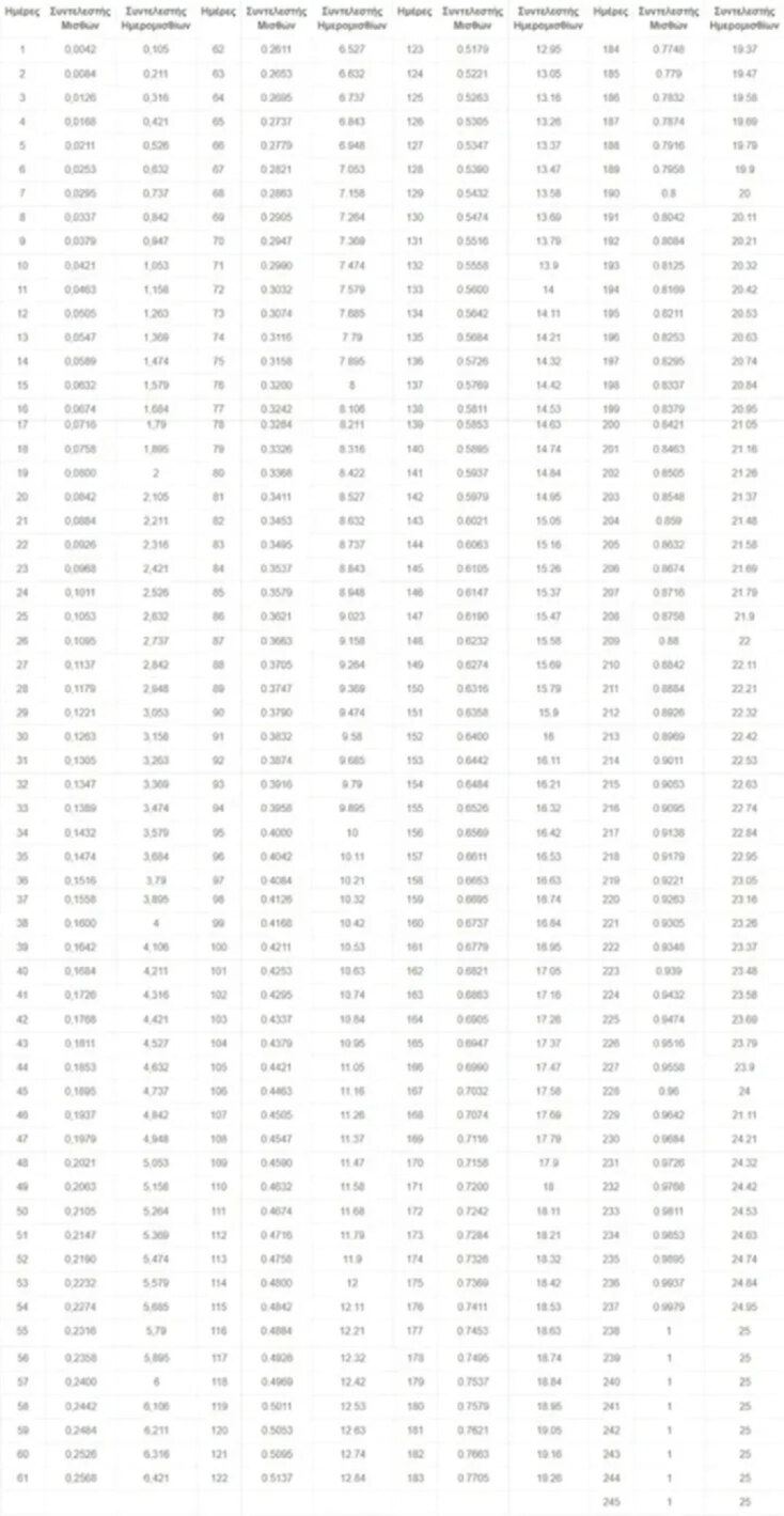 - 25 ημερομίσθια για τους αμειβόμενους με ημερομίσθιο.