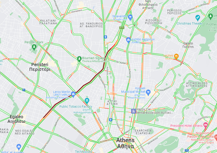 Κίνηση στους δρόμους της Αθήνας - Κυκλοφοριακό κομφούζιο στον Κηφισό λόγω τροχαίου – Χάρτης με την κυκλοφορία των οχημάτων