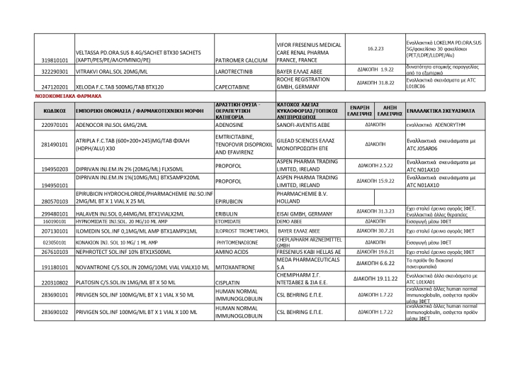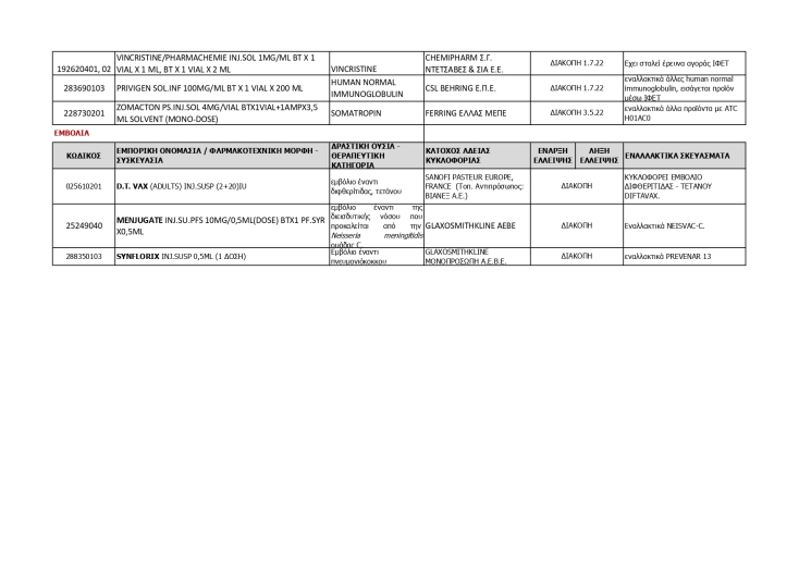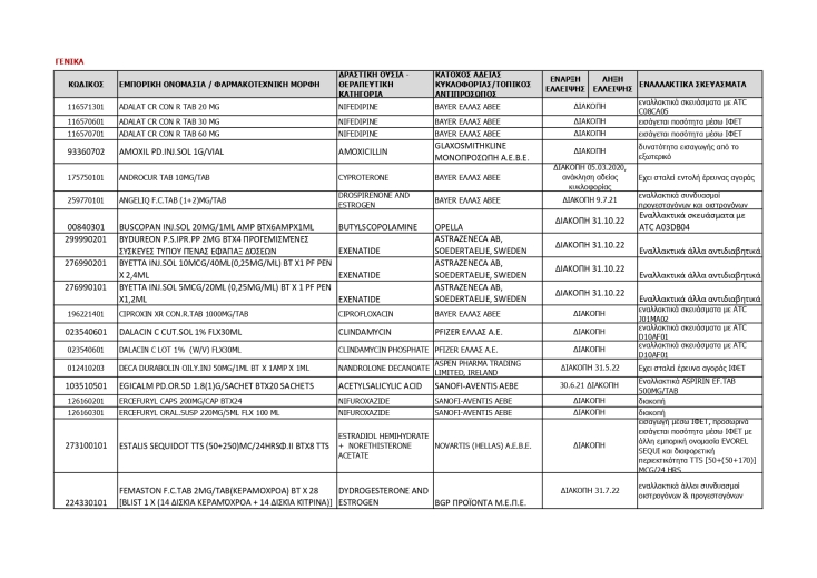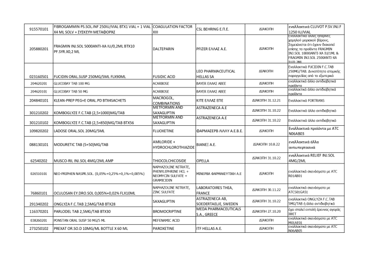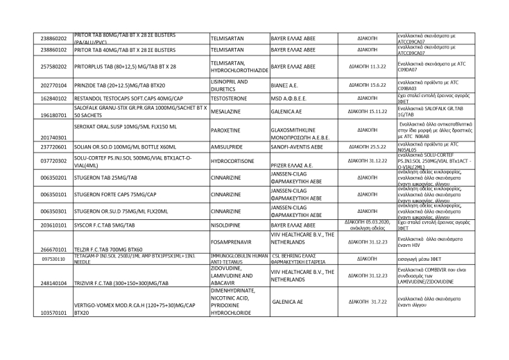 Ακολουθούν οι αναλυτικοί πίνακες του ΕΟΦ με τα φάρμακα σε έλλειψη: