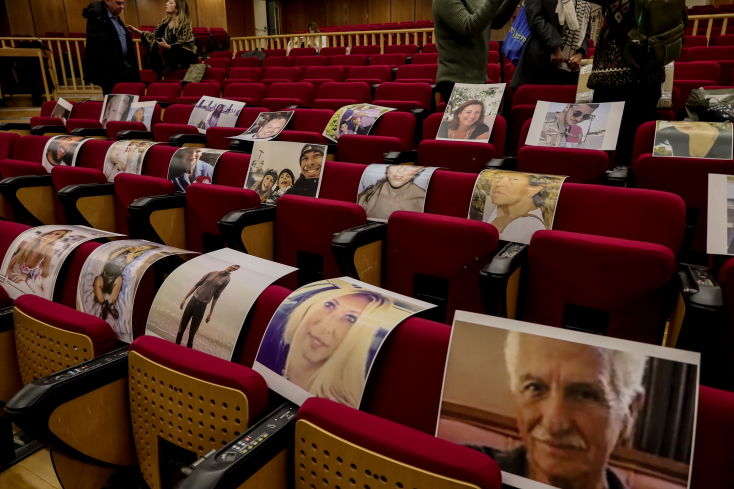 Στο διάλειμμα, λίγο αργότερα, μου συστήνουν τη σύζυγό του, κ. Σιαπκάρα, που κάθεται δυο σειρές πιο μπροστά. Έρχονται από την Κόρινθο. Δεν μπορώ να περιγράψω πώς αισθάνομαι απέναντι σε αυτούς τους ανθρώπους. «Με συγχωρείτε, δεν ξέρω τι να σας πω, συλλυπητήρια» της λέω και της πιάνω το χέρι, τη χαϊδεύω στην πλάτη. Μου μιλάει κλαίγοντας.