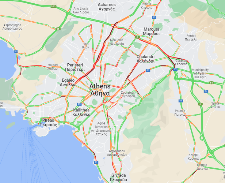 Δυσκολίες στην Παραλιακή στο ρεύμα προς Πειραιά από το ύψος του παλαιού Αεροδρομίου μέχρι τον Φλοίσβο και από το Στάδιο Γεώργιος Καραϊσκάκης μέχρι την πλατεία Ιπποδαμείας.