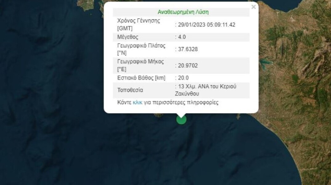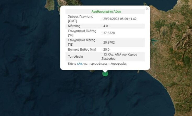Σεισμός στη Ζάκυνθο: Η δόνηση των 4 Ρίχτερ το πρωί της Κυριακής 29 Ιανουαρίου 2023 - Το εστιακό βάθος και το επίκεντρο