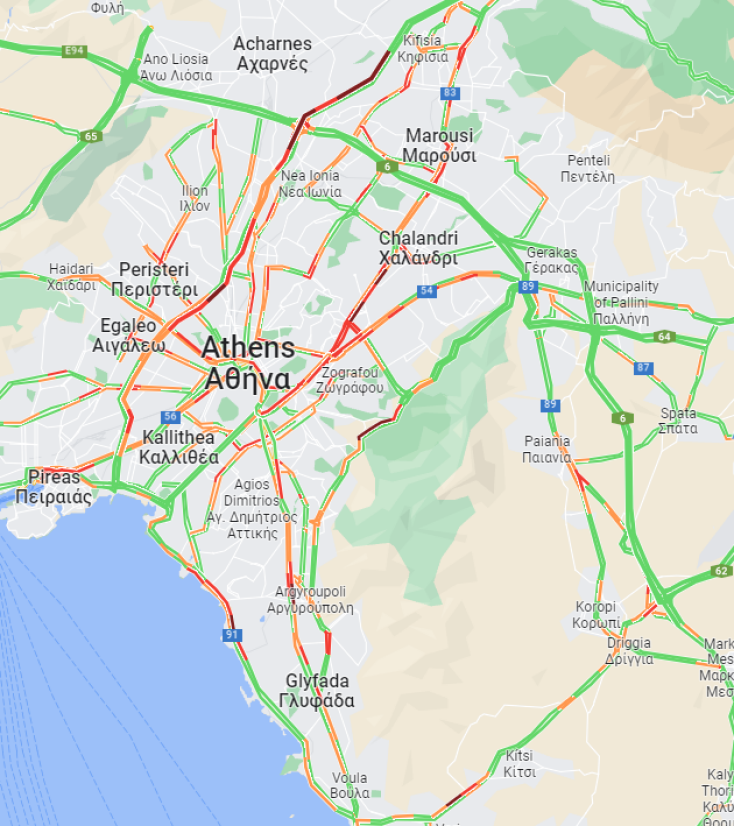 Αυξημένη κίνηση στην Κατεχάκη, από την Καισαριανή προς τον Βύρωνα.