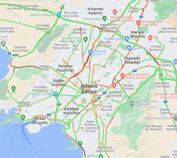 Πολύ αυξημένη κίνηση στην Αττική οδό στο ρεύμα προς το Αεροδρόμιο από το ύψος του κόμβου της Λεωφόρου Δημοκρατίας έως την έξοδο στην Εθνική και στο ρεύμα προς Ελευσίνα από την Περιφερειακή Υμηττού έως και τον κόμβο της λεωφόρου Πεντέλης.