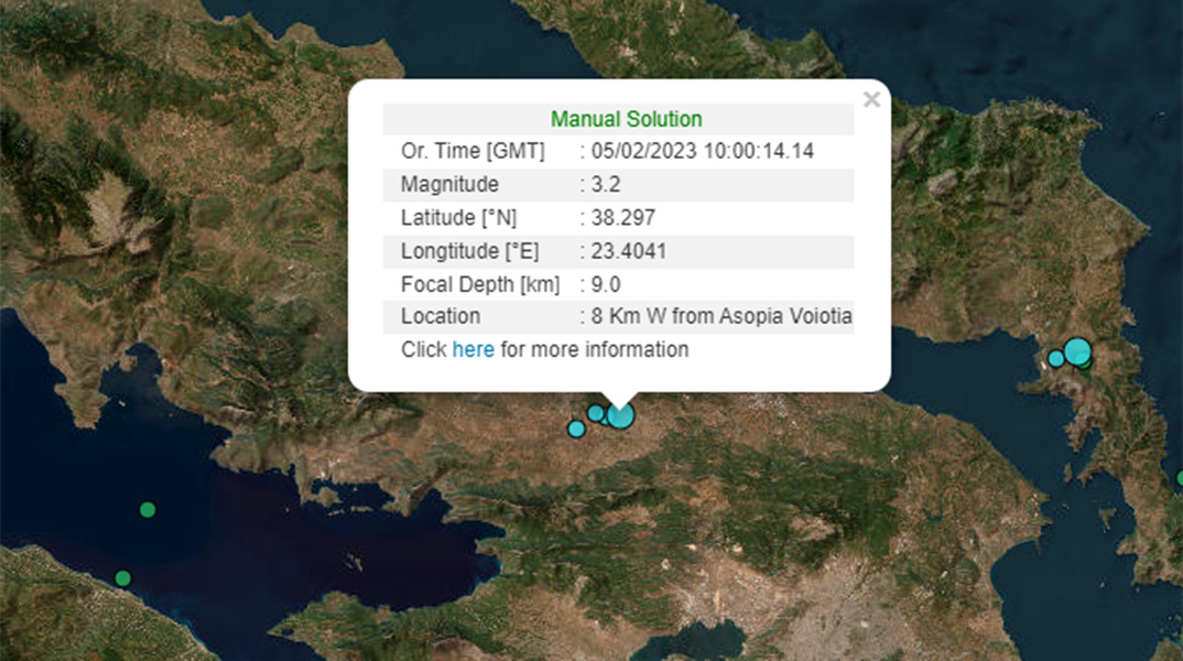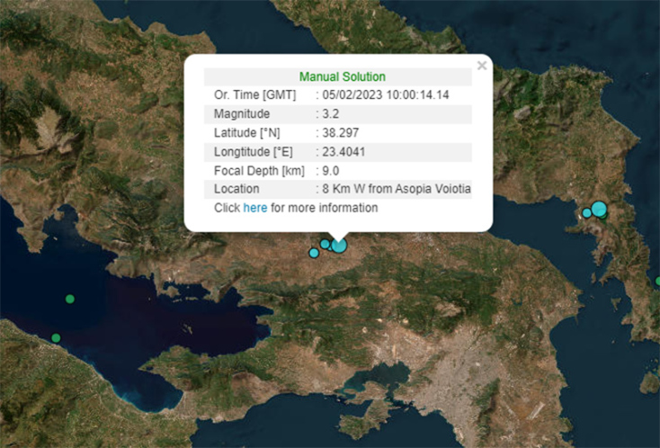 Σεισμός 3,2 βαθμών της κλίμακας Ρίχτερ σημειώθηκε λίγο μετά τις 12:00 το μεσημέρι της Κυριακής (05/02) στη Βοιωτία.