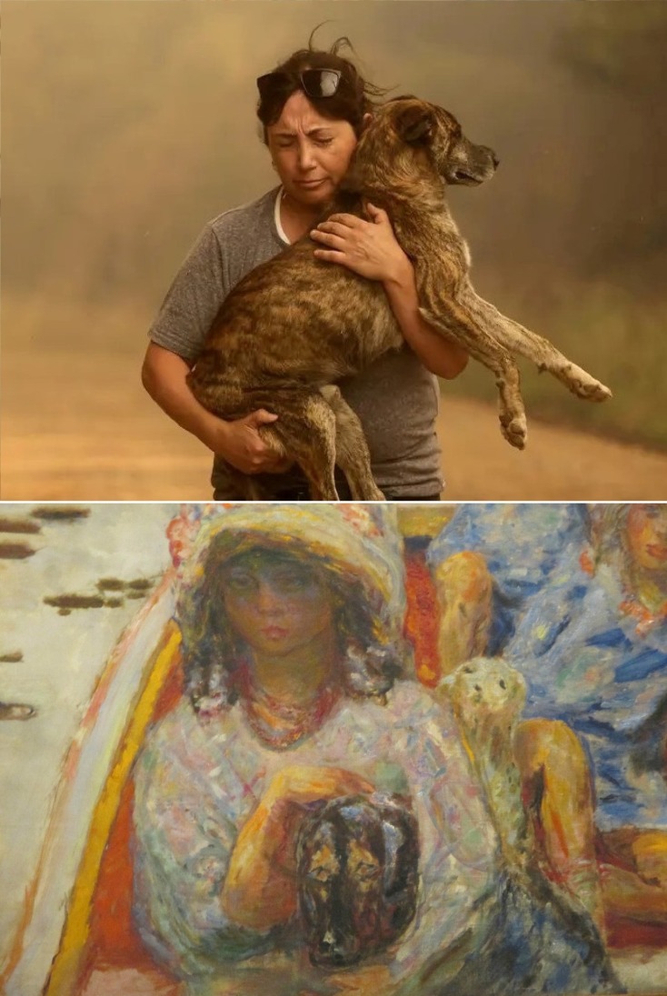 Κάτι που επίσης τον ξεχώριζε, ήταν η ευρηματική ματιά του, που διέκρινε αναπάντεχες ομοιότητες και αναλογίες σε διάφορα συστήματα, καταστάσεις και ενσταντανέ της επικαιρότητας, με έργα τέχνης — μία δεξιότητα που γέννησε έναν πελώριο αριθμό από δίπτυχα (ή «διπλάκια», όπως τα ονόμαζε ο ίδιος με τη συνηθισμένη του σεμνότητα) στο Facebook, σχολιασμένα τις περισσότερες φορές από τον στενό φίλο του Γιώργο Λιγνό. Ο αναγνώστης μπορεί να περιηγηθεί στη σελίδα του για να τα δει όλα. Αμέσως παρακάτω, παρουσιάζουμε ελάχιστα μόνο από αυτά.