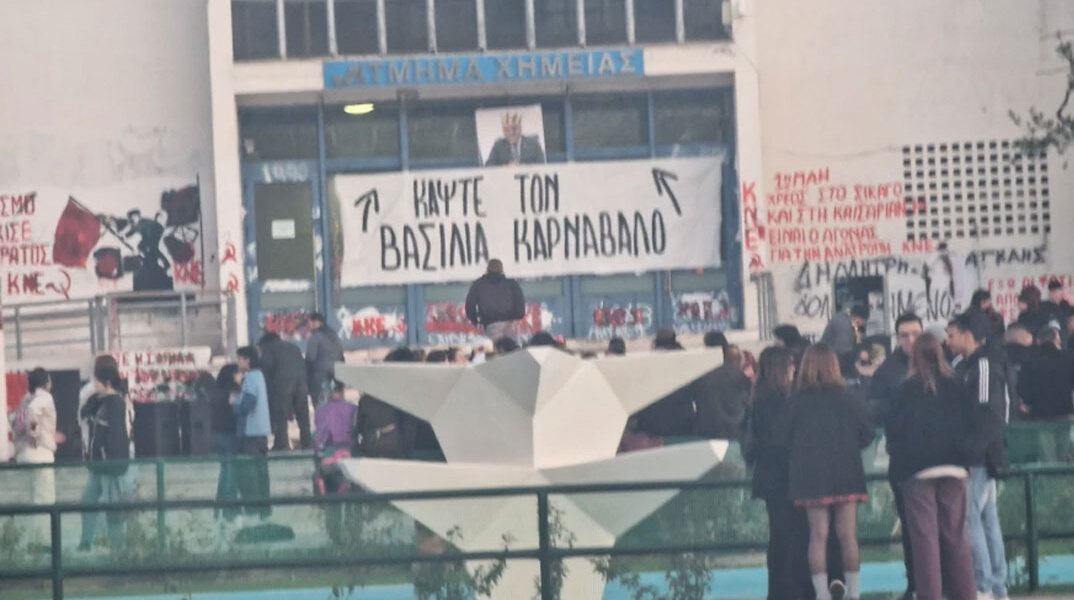 ΑΠΘ: Κρέμασαν πανό για τον πρύτανη - «Κάψτε τον βασιλιά καρνάβαλο»