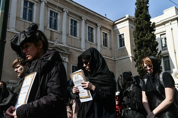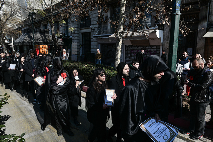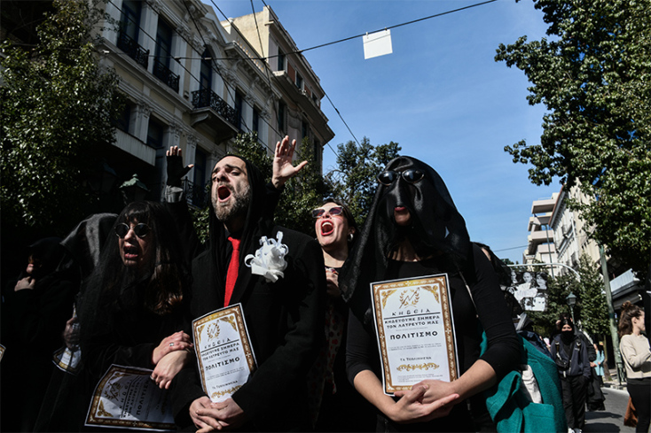 Καλλιτέχνες ντύθηκαν στα μαύρα και έκαναν την «κηδεία» του Πολιτισμού (εικόνες)