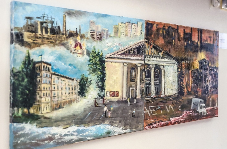 Πρώτο στη λίστα ένα δώρο μεγάλης συναισθηματικής αξίας, ο πίνακας που χάρισε στην Πρόεδρο ο πρόεδρος Ζελένσκι στο ταξίδι της στο Κίεβο – όχι βέβαια στα πλαίσια της εθιμοτυπίας, δεν υπάρχουν πρωτόκολλα για τις επισκέψεις σε ένα εμπόλεμο κράτος. Την ελαιογραφία-δίπτυχο με τίτλο «Τα παιδιά της Μαριούπολης» έχει ζωγραφίσει η δεκατετράχρονη Veronika Pirko, είναι το Δημοτικό Θέατρο της Μαριούπολης χωρισμένο στη μέση, αριστερά όπως ήταν πριν, μια όμορφη, λαμπερή πόλη, δεξιά καταστροφή και θάνατος. Τον πίνακα σκοπεύουν να βάλουν σε κορνίζα και να του βρουν μία περίοπτη θέση σε έναν από τους τοίχους της Αίθουσας, ενώ στη διπλανή προθήκη βλέπουμε μία κορνιζαρισμένη αφισέτα από το τμήμα Νεοελληνικών Σπουδών του –κατεστραμμένου πια– πανεπιστημίου της Μαριούπολης, που της έδωσε ο πρύτανης του πανεπιστημίου στο ίδιο ταξίδι.