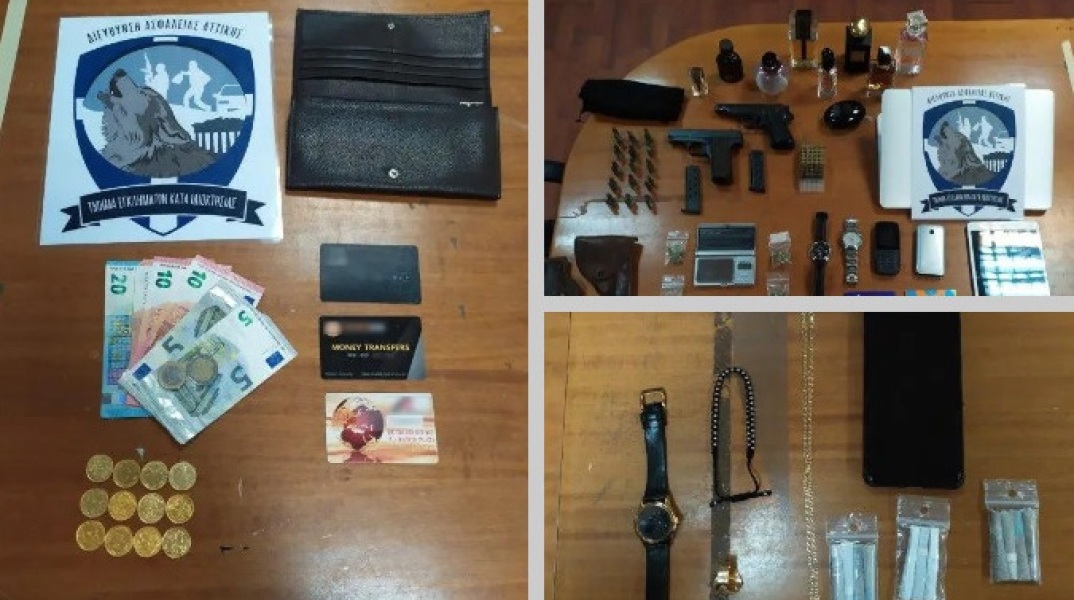 Συνελήφθη, στο πλαίσιο του αυτοφώρου, πρωινές ώρες της 16-3-2023 στο κέντρο της Αθήνας, από αστυνομικούς του Τμήματος Δίωξης Εγκλημάτων κατά Ιδιοκτησίας της Διεύθυνσης Ασφαλείας Αττικής, 43χρονος αλλοδαπός για διακεκριμένη περίπτωση κλοπής άνω των 120.000 ευρώ, παράβαση του νόμου περί όπλων και περί εξαρτησιογόνων ουσιών.