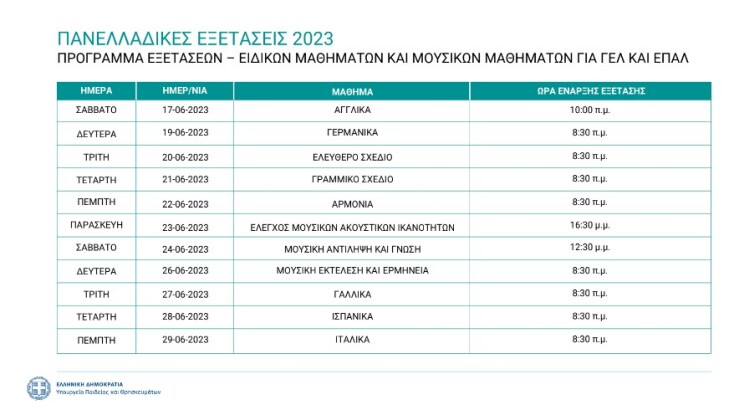 Πανελλήνιες 2023: Το πρόγραμμα για τα Ειδικά και Μουσικά Μαθήματα για ΓΕΛ και ΕΠΑΛ