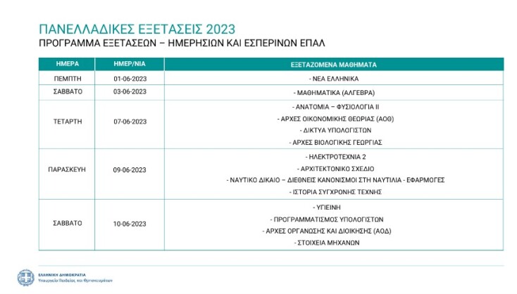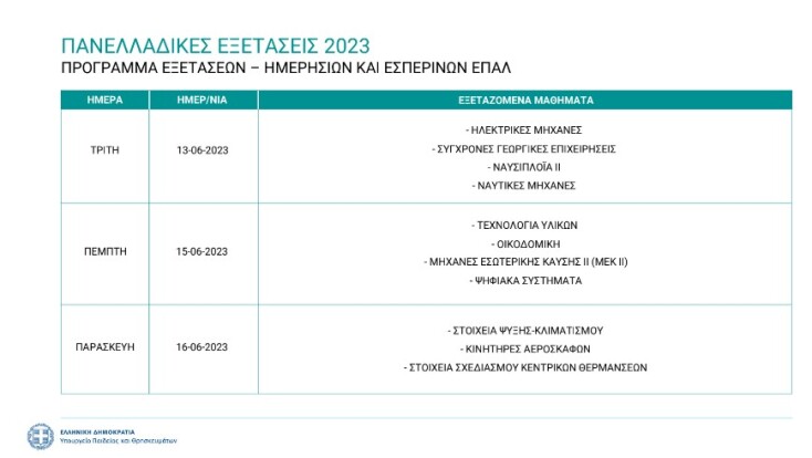 Πανελλήνιες 2023: Το πρόγραμμα για τα Ημερήσια και Εσπερινά ΕΠΑΛ