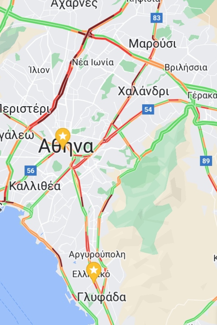 Καθυστερήσεις στην κάθοδο της Λεωφόρου Κηφισίας από το ύψος του κτήματος Συγγρού μέχρι την Αγία Βαρβάρα και στην άνοδο από την Κατεχάκη μέχρι το Δαχτυλίδι της Αττικής οδού.
