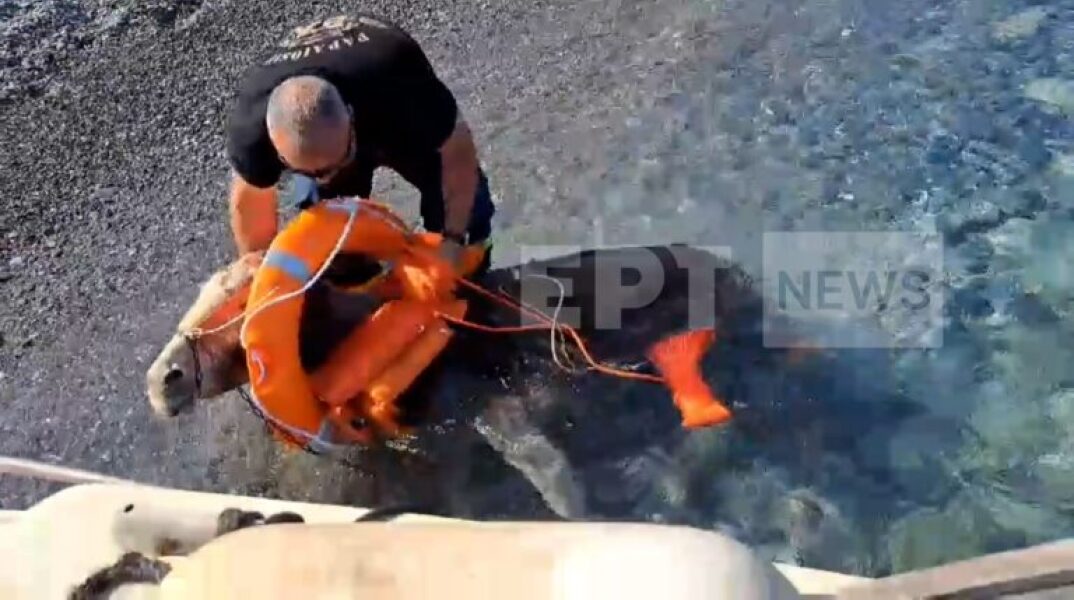 Ήταν μια πραγματικά δύσκολη και συνάμα πρωτόγνωρη επιχείρηση τόσο για τους άνδρες του λιμενικού, του πυροσβεστικού κλιμακίου, του φορέα διαχείρισης, αλλά και των εθελοντών, οι οποίοι με ιδιαίτερη ευαισθησία και προσοχή κατάφεραν να μεταφέρουν σε ασφαλές σημείο τα δύο ζώα.