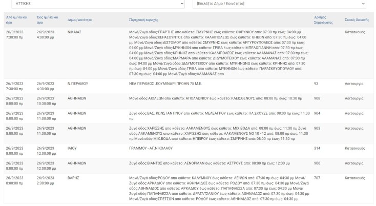 Διακοπές ρεύματος έχει προγραμματίσει για σήμερα Τρίτη (26.9) ο ΔΕΔΔΗΕ σε περιοχές της Αττικής.