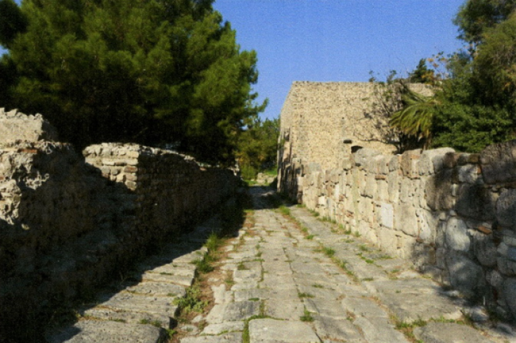 Μια δεύτερη πορεία θα οδηγεί προς την ακρόπολη μέσω αρχαίας οδού που βρίσκεται μεταξύ των οικιών του Σειληνού και της Ευρώπης.