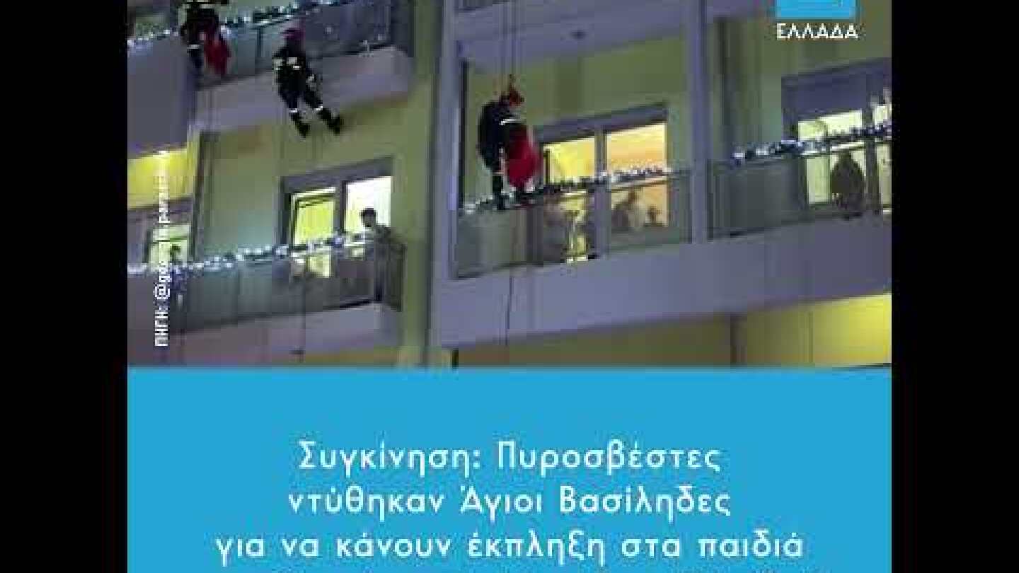 Όπως κάθε χρόνο, έτσι και φέτος, Έλληνες Πυροσβέστες μεταμφιέστηκαν σε Άγιους Βασίληδες προκειμένου να κάνουν έκπληξη στα παιδιά της Ογκολογικής Μονάδας Ελπίδα. Σε βίντεο που ανέβασε η Γεωργία Παράσχου στο Instagram βλέπουμε ιπτάμενους πυροσβέστες να κατεβαίνουν με σχοινιά από όροφο σε όροφο για να δώσουν ένα μεγάλο χαμόγελο στα παιδιά που νοσηλεύονται μαζί με τα δώρα που ζήτησαν από τον Άγιο Βασίλη.