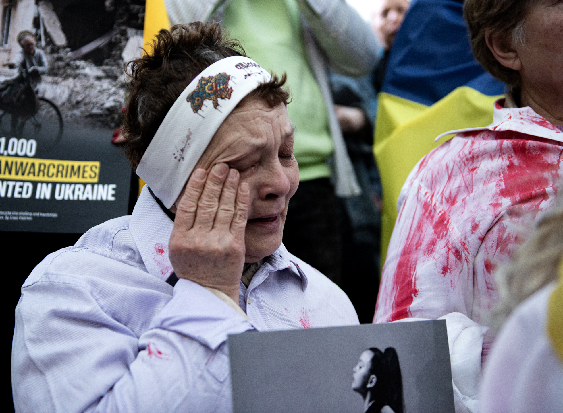 Άνθρωποι όλων των ηλικιών, μερικοί από αυτούς ήταν ντυμένοι με παραδοσιακές στολές, άλλοι κρατώντας εικόνες από το μέτωπο του πολέμου και τις καταστροφές που έχει υποστεί η χώρα τους. Γυναίκες ντυμένες με λευκά πουκάμισα, βαμμένα με κόκκινο χρώμα που αντιπροσωπεύει το αίμα των συμπατριωτών τους. Στη συνάντηση έρχονται κι άτομα από άλλες χώρες όπως την Τσεχία, την Κροατία, τη Γεωργία, την Πορτογαλία και την Ελλάδα (συγγνώμη αν παραλείπω κάποια). Η πορεία ξεκινά, στη διαδρομή ακούγονται συνθήματα κατά της Ρωσίας και του Βλαντίμιρ Πούτιν, σε λίγα λεπτά φτάνουμε στην πλατεία Συντάγματος όπου θα ακουστούν ομιλίες. Όταν ακουστεί ο εθνικός ύμνος της Ουκρανίας, η συγκίνηση μεγαλώνει. Ουκρανοί κοιτάζοντας προς τον ουρανό με δάκρυα στα μάτια ήταν σαν να ζητούν από τον όποιο θεό να σταματήσει η σφαγή των ανθρώπων τους.