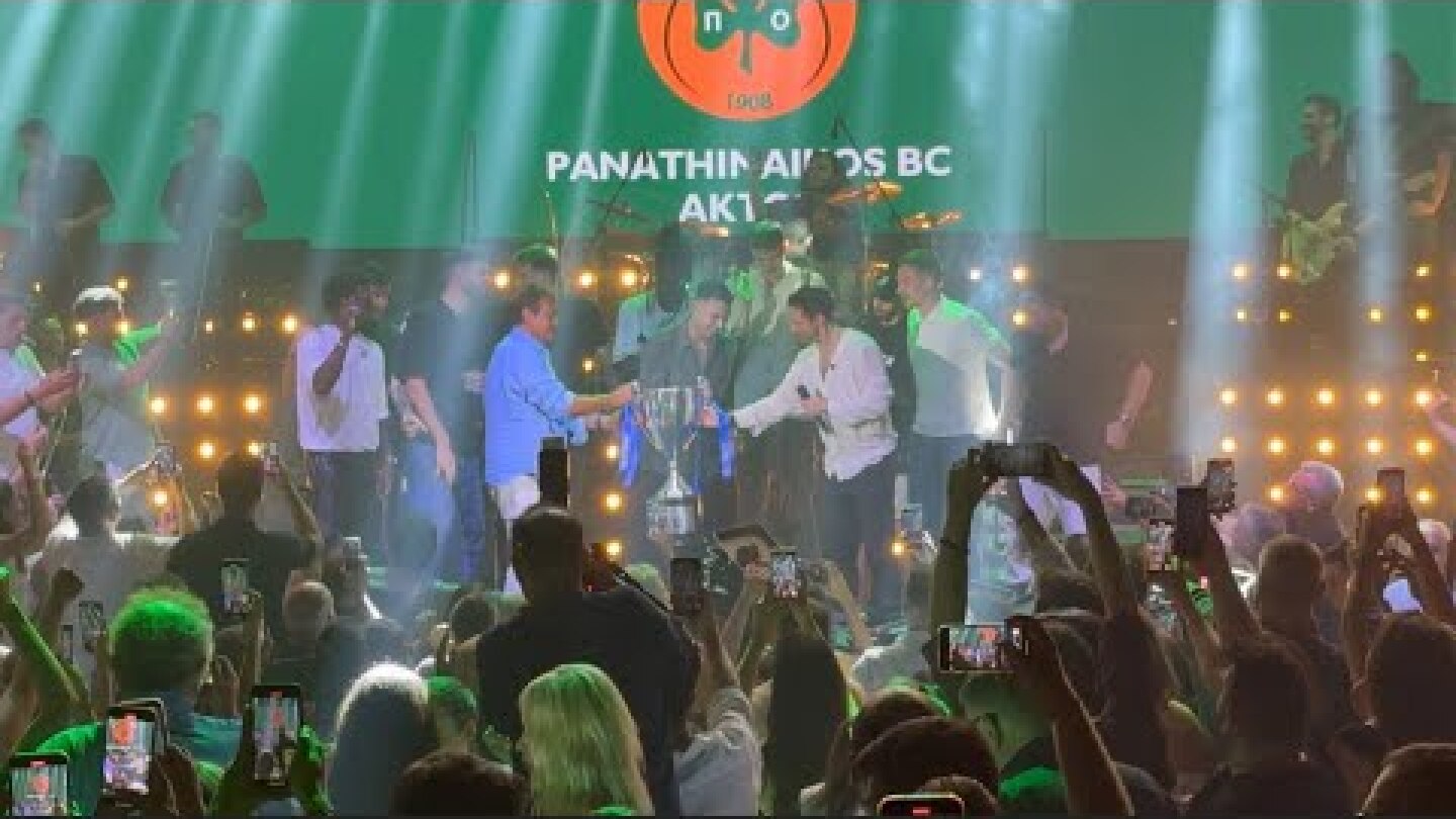 Ο δημοφιλής καλλιτέχνης τραγούδησε τον ύμνο του «τριφυλλιού», ο κόσμος τραγούδησε συνθήματα και οι παίκτες το διασκέδασαν με την ψυχή τους, με τις δύο φετινές κούπες να βρίσκονται σε περίοπτη θέση.