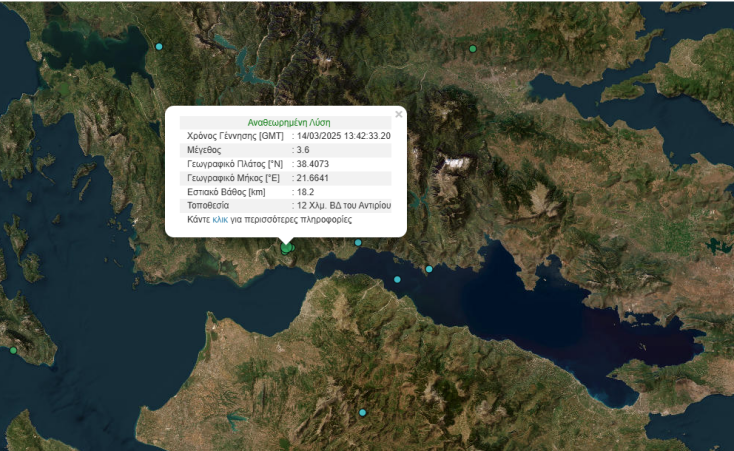Ο σεισμός ήταν μεγέθους 3,6 Ρίχτερ, με εστιακό βάθος στα 18.2 χλμ και επίκεντρο τα 12 χλμ ΒΔ του Αντιρρίου.