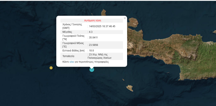 Νέος σεισμός στην Κρήτη, μετά τα 4,8 Ρίχτερ στο Λασίθι - Με επίκεντρο αυτή τη φορά τα Χανιά