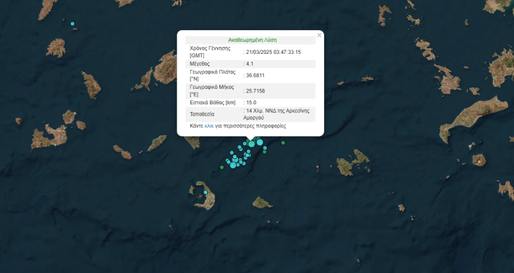 Σεισμός 4,1 Ρίχτερ ανάμεσα στην Αμοργό και τη Σαντορίνη - Το επίκεντρο και το εστιακό βάθος της δόνησης