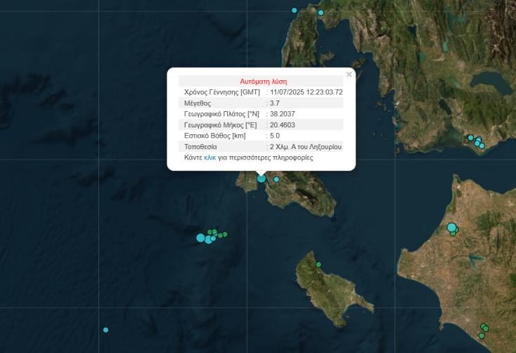 Σεισμός μεγέθους 3.8 Ρίχτερ έγινε αισθητός στην Κεφαλονιά το μεσημέρι της Παρασκευής (11.07).