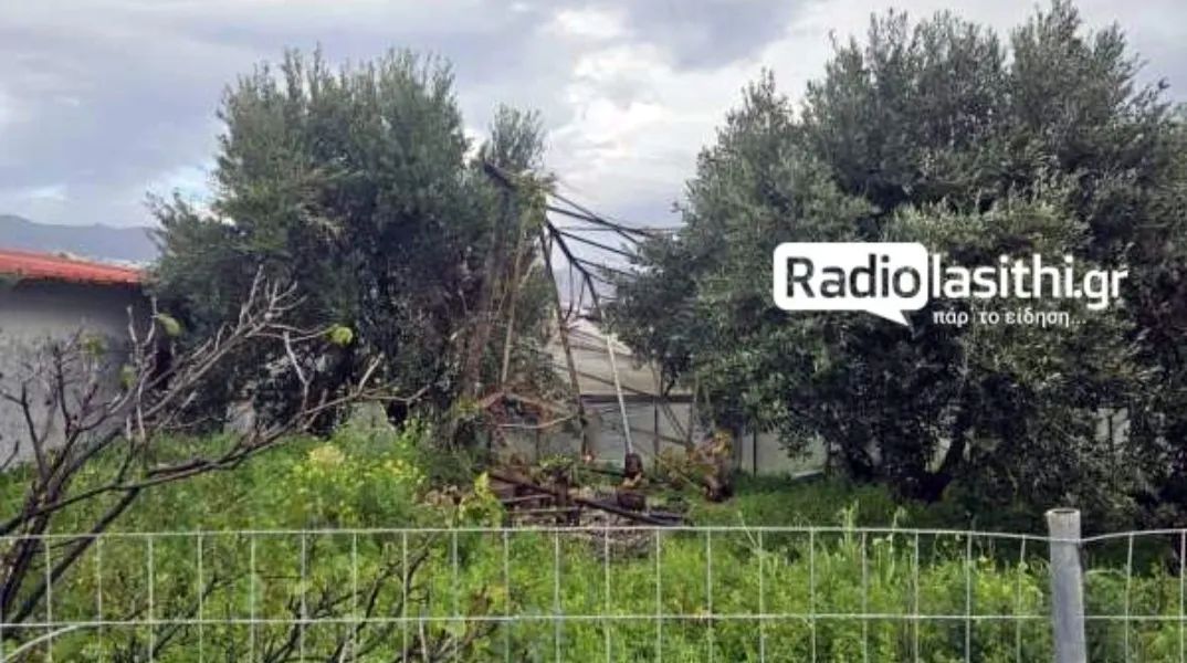 Παράλληλα, καλώδια ηλεκτροδότησης κατέληξαν πάνω σε θερμοκήπιο, προκαλώντας διακοπή ρεύματος στην περιοχή για αρκετή ώρα. Την ένταση του φαινομένου αποδεικνύει και η κατάρρευση ανεμόμυλου, ο οποίος έσπασε από τη βάση του.