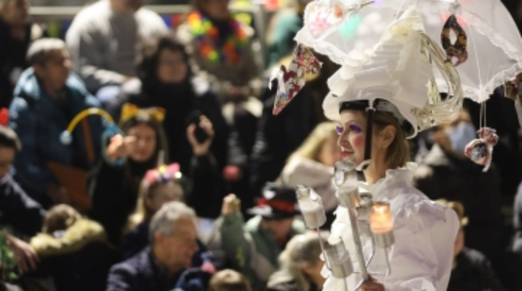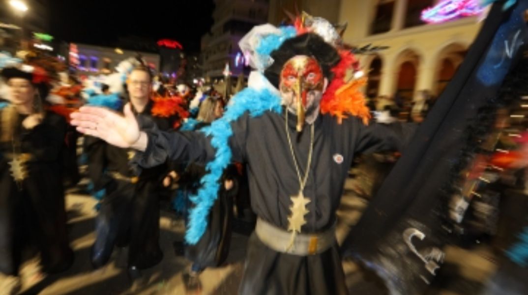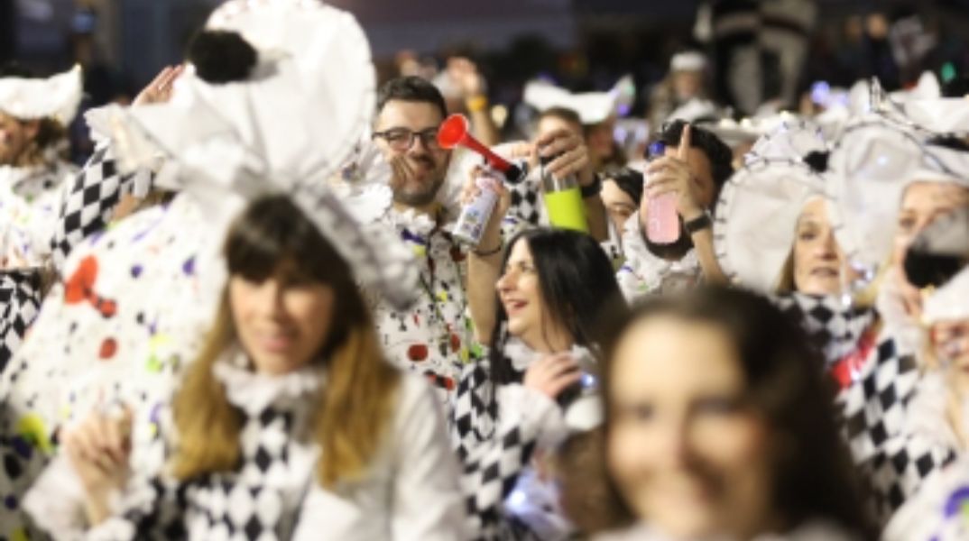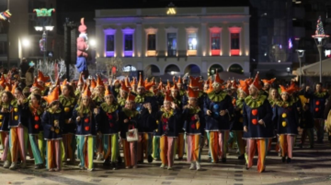 Χιλιάδες καρναβαλιστές παρέλασαν τη νύχτα στην Πάτρα με άρματα, σοκολατοπόλεμο και χρώματα παντού στο Πατρινό Καρναβάλι