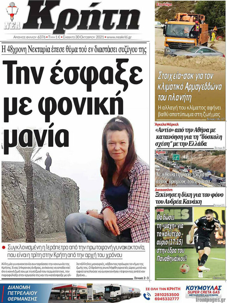 Η 48χρονη Νεκταρία Μαράκη, μητέρα τεσσάρων παιδιών 25, 22 και δύο δίδυμων κοριτσιών 18 ετών, ήταν θύμα γυναικοκτονίας στην Ιεράπετρα Κρήτης το φθινόπωρο του 2021. Δράστης της δολοφονίας ο 54χρονος πρώην σύζυγός της, με τον οποίο είχαν χωρίσει πριν από λίγους μήνες και η γυναίκα διέμενε προσωρινά σε ενοικιαζόμενα δωμάτια. Εκεί τη βρήκε ο δράστης, με τον οποίο δεν είχε συναντηθεί από τότε που χώρισαν και προσπάθησε να τη μεταπείσει. Εκείνη δεν ήθελε καν να συζητήσει την επανασύνδεσή τους, με αποτέλεσμα να ξεσπάσει άγριος καβγάς.