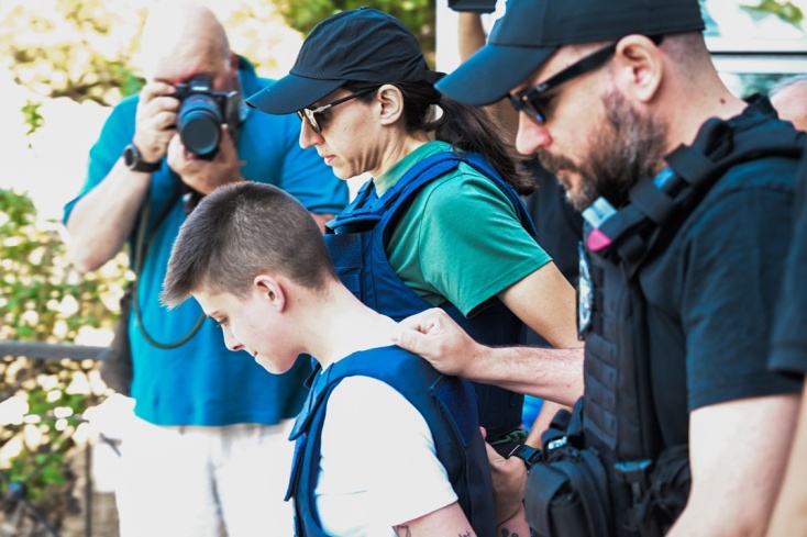 Η Ειρήνη Μουρτζούκου με σκυμμένο το κεφάλι και φορώντας αλεξίσφαιρο γιλέκο βγήκε συνοδευόμενοι από αστυνομικούς από τη ΓΑΔΑ, προκειμένου να μεταφερθεί στον Εισαγγελέα, όπου αναμένεται και επίσημα να τις αποδοθούν κατηγορίες.