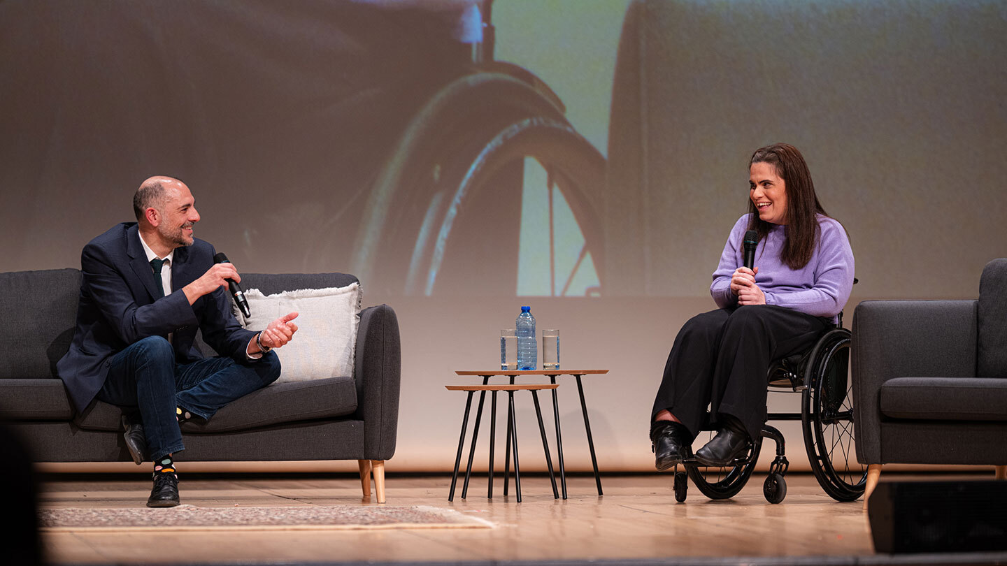 Η Μαρία Ιωαννίδου μίλησε από μια εντελώς διαφορετική, αλλά εξίσου βαθιά πλευρά. Όταν ρωτήθηκε για τις στιγμές απελπισίας, εξήγησε ότι δεν προέρχονται από την αναπηρία της — αυτό είναι η φυσική της κατάσταση. Κι όταν η απελπισία εμφανίζεται, δύο πράγματα την κρατούν: η μνήμη των επαναλήψεων («ήμουν εκεί και βγήκα») και το όραμα που έχει συνδέσει με τον εαυτό της τα τελευταία χρόνια — τις σπουδές της στη χοροθεραπεία και την αυθεντική κίνηση και την επιθυμία της να εκπαιδεύσει φροντιστές και θεραπευτές.
