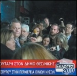 2) Η κορυφαία στιγμή των εκλογών: οι «Μπουταρικοί» διακόπτουν με τους πανηγυρισμούς τους τις δηλώσεις Βενιζέλου.
