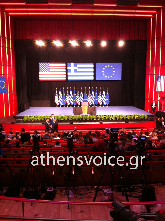 Ουρά έξω από το Ίδρυμα Σταύρος Νιάρχος, δύο ώρες πριν από την ομιλία Ομπάμα κι εξονυχιστικοί έλεγχοι. Πατήστε ΕΔΩ για να δείτε εικόνες από το σημείο.