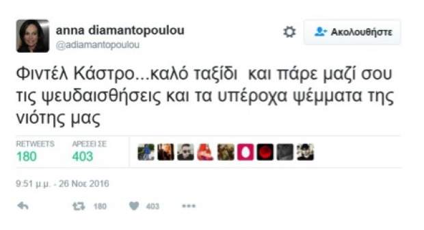 Δεν έχω ιδέα τι έκανε η Κούβα επί Κάστρο αλλά ξέρω ότι και για τη χούντα του Παπαδόπουλου υπάρχουν κάποιοι βλαμμένοι που ισχυρίζονται ότι άλλαξε προς το καλύτερο την Ελλάδα. Αυτό που επίσης ξέρω είναι πως ενώ χιλιάδες άνθρωποι διακινδύνευσαν τη ζωή τους για να ξεφύγουν από τα άλματα του Κομαντάντε δεν πρέπει να ήταν και πάρα πολλοί αυτοί που έβαλαν σε κίνδυνο τη ζωή τους για να ακολουθήσουν την αντίθετη διαδρομή.