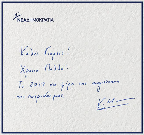 Μία λιτή χειρόγραφη κάρτα έστειλε ο Κυριάκος Μητσοτάκης στα μέλη του κόμματός του..
