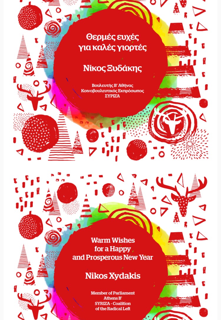Ευχές και για αγγλόφωνους φίλους του έστειλε ο βουλευτής του ΣΥΡΙΖΑ, Νίκος Ξυδάκης