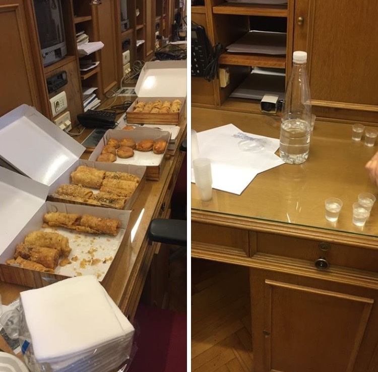 Ο ανεξάρτητος βουλευτής Χάρης Θεοχάρης έφερε και κέρασε όλους σοκολατάκια από τον Λεωνίδα
