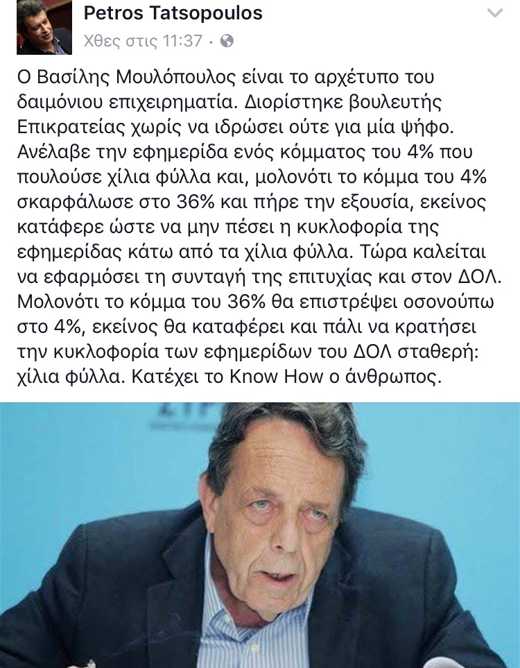 Σωστό είναι αυτό που είπε ο κ. Μουλόπουλος για τις αλλαγές που θα κάνει στον ΔΟΛ πως "Ο Πάγκαλος δεν μπορεί να συνεχίσει να λέει "τσογλάνι" τον πρωθυπουργό". Μόνο ο τότε διευθυντής του "Στο Κόκκινο" είχε το δικαίωμα να αποκαλεί "μαλάκα" τον τότε πρωθυπουργό