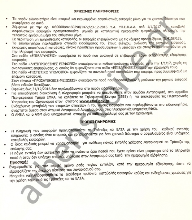 Όπως φαίνεται στη δεύτερη σελίδα των ειδοποιητηρίων περιγράφονται χρήσιμες πληροφορίες, αλλά και οι τρόποι πληρωμής των εισφορών.