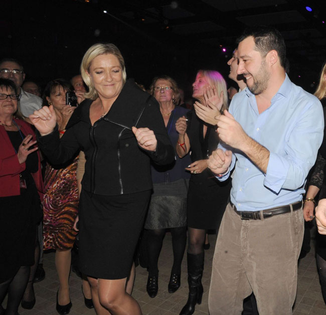 Η Marine Le Pen όπως φαίνεται δεν διατηρεί μόνο πολιτικές σχέσεις με τον γραμματέα της Λίγκας του Βορά Matteo Salvini αλλά και προσωπικές. Μάλιστα στο συνέδριο του Εθνικού Μετώπου το 2014 στη Λυόν τον είχε καλέσει να χαιρετίσει και να συμμετάσχει ενώ μετά βγήκαν σε νυχτερινό κέντρο της πόλης και έδωσαν ένα χορευτικό σόου μπροστά στους φωτογράφους και τις κάμερες από όπου και η εικόνα που ακολουθεί: