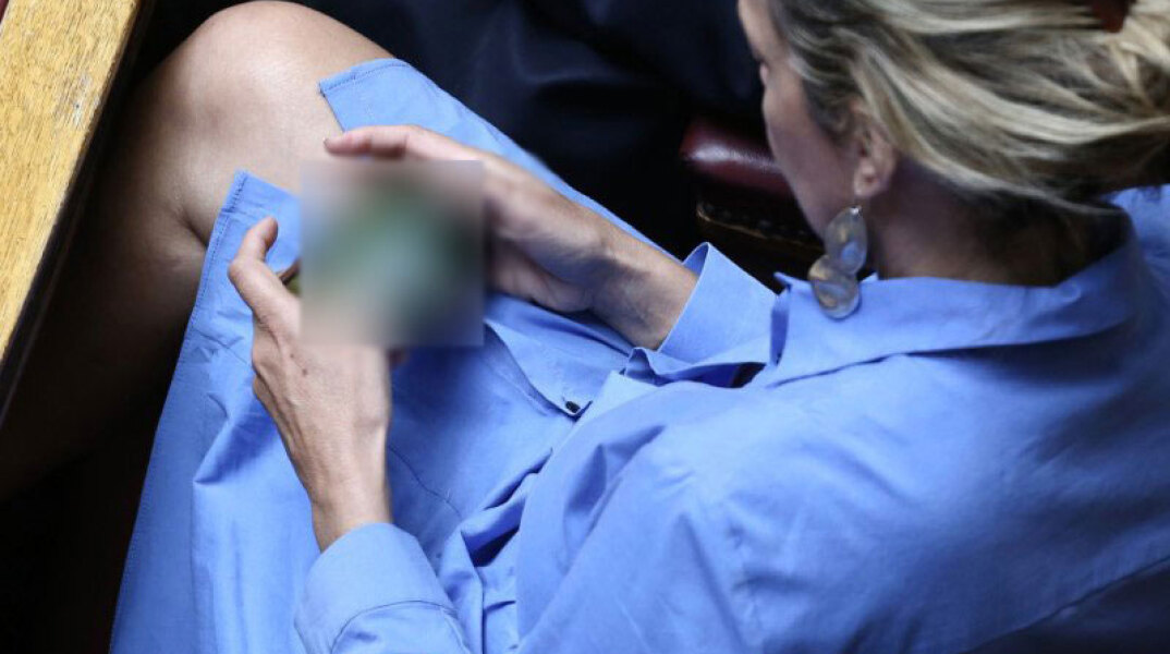 Ο φακός έκανε ζουμ στη συσκευή και η βουλευτής πιάστηκε στα πράσα.