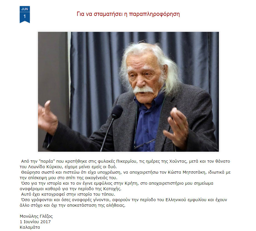»Όσο για την ιστορία και το αν έγινε εμφύλιος στην Κρήτη, στο αποχαιρετιστήριο μου σημείωμα αναφέρομαι καθαρά για την περίοδο της Κατοχής.