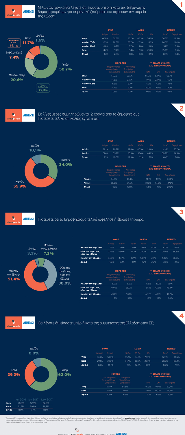 Δημοσκόπηση με αφορμή τη συμπλήρωση 2 χρόνων από το Δημοψήφισμα πραγματοποίησε η aboutpeople για λογαριασμό της Athens Voice.