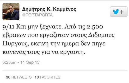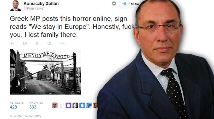 Ο άνθρωπος που ανάμεσα σε άλλα πιστεύει ότι 2.500 Εβραίοι είχαν ειδοποιηθεί στις 11/9 και δεν πήγαν στη δουλειά τους στους Δίδυμους Πύργους, που είχε αναρτήσει μια φωτογραφία της πύλης του Άουσβιτς όπου αντί της επιγραφής «arbeit macht frei» υπήρχε η φράση «Μένουμε Ευρώπη», που είχε τουιτάρει «Μπόουλινγκ στον υφυπουργό, σκουλίκια; Μόνος μου κι όλοι σας. Κλείνω το ακάουντ αλλά υπόσχομαι θα σας βρω ως υπεύθυνος πλέον για τα δίκτυα» και είχε κάνει παρατήρηση στη Χρυσή Αυγή που δεν είχε παρέμβη «στα ξεφτιλισμένα γκέι πάρειντ».