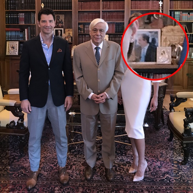 Στη φωτογραφία του Προέδρου της Δημοκρατίας με το ζεύγος Ρουβά, παρατηρώ πίσω δεξιά στη βιβλιοθήκη, μια φωτογραφία του Κώστα Καραμανλή. Επιτρέπεται ο ανώτατος πολιτειακός άρχων να έχει στη βιβλιοθήκη του υπηρεσιακού του γραφείου, την φωτογραφία του βουλευτή ενός συγκεκριμένου κόμματος;