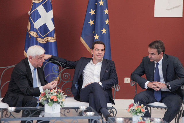 Ενδεικτικός της χαλαρής διάθεσης των πολιτικών αρχηγών ήταν ο διάλογος ανάμεσα στους κυρίους Μητσοτάκη, Καμμένο και Τσίπρα, όπως τον περιγράφει το thema.gr.